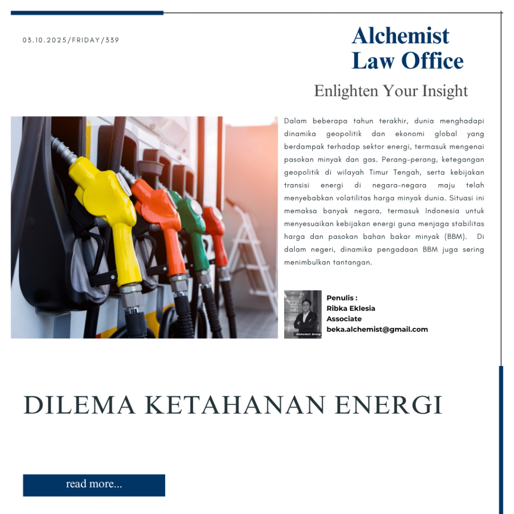 Dalam beberapa tahun terakhir, dunia menghadapi dinamika geopolitik dan ekonomi global yang berdampak terhadap sektor energi, termasuk mengenai pasokan minyak dan gas. Perang-perang, ketegangan geopolitik di wilayah Timur Tengah, serta kebijakan transisi energi di negara–negara maju telah menyebabkan volatilitas harga minyak dunia. Situasi ini memaksa banyak negara, termasuk Indonesia untuk menyesuaikan kebijakan energi guna menjaga stabilitas harga dan pasokan bahan bakar minyak (BBM). Sebagai contoh pengalaman, pada tahun 2008 pernah terjadi krisis minyak dimana menunjukkan ketidakstabilan pasokan dapat menimbulkan efek domino terhadap ekonomi nasional, mulai dari inflasi, gejolak harga barang pokok, hingga ketidakpuasan sosial.