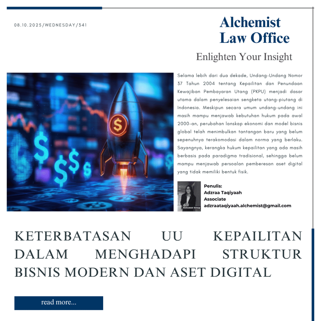 Selama lebih dari dua dekade, Undang-Undang Nomor 37 Tahun 2004 tentang Kepailitan dan Penundaan Kewajiban Pembayaran Utang (PKPU) menjadi dasar utama dalam penyelesaian sengketa utang-piutang di Indonesia. Meskipun secara umum undang-undang ini masih mampu menjawab kebutuhan hukum pada awal 2000-an, perubahan lanskap ekonomi dan model bisnis global telah menimbulkan tantangan baru yang belum sepenuhnya terakomodasi dalam norma yang berlaku. Ekonomi digital telah mengubah struktur kekayaan perusahaan secara mendasar. Banyak entitas usaha saat ini tidak lagi bertumpu pada aset berwujud seperti tanah atau mesin, tetapi pada kekayaan tidak berwujud (intangible assets) seperti lisensi perangkat lunak, merek dagang, hak cipta, data pengguna, algoritma, dan bahkan aset kripto. Sayangnya, kerangka hukum kepailitan yang ada masih berbasis pada paradigma tradisional, sehingga belum mampu menjawab persoalan pemberesan aset digital yang tidak memiliki bentuk fisik dan sering kali melibatkan yurisdiksi lintas negara.