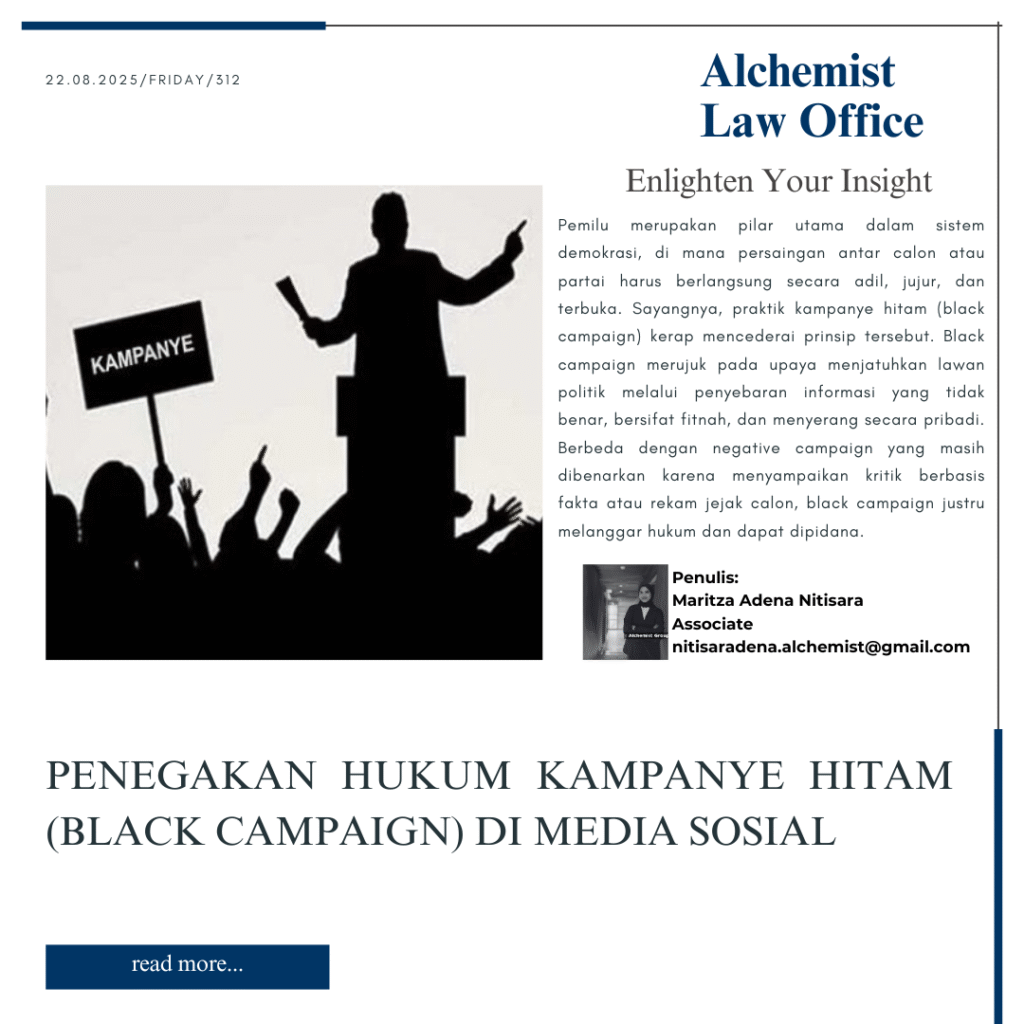 Pemilu merupakan pilar utama dalam sistem demokrasi, di mana persaingan antar calon atau partai harus berlangsung secara adil, jujur, dan terbuka. Sayangnya, praktik kampanye hitam (black campaign) kerap mencederai prinsip tersebut. Black campaign merujuk pada upaya menjatuhkan lawan politik melalui penyebaran informasi yang tidak benar, bersifat fitnah, dan menyerang secara pribadi. Berbeda dengan negative campaign yang masih dibenarkan karena menyampaikan kritik berbasis fakta atau rekam jejak calon, black campaign justru melanggar hukum dan dapat dipidana.